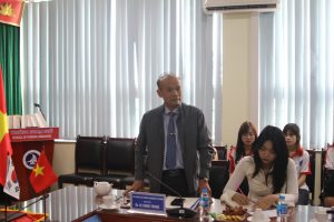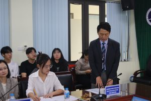 Phát biểu chào mừng, TS. Lê Hồng Thắng – Hiệu trưởng Nhà trường, đã bày tỏ niềm vui và vinh dự khi được đón tiếp đoàn. Thầy mong muốn hai bên sẽ phát triển các chương trình hợp tác sâu rộng hơn, không chỉ dừng lại ở việc trao đổi sinh viên mà còn mở rộng ra nhiều lĩnh vực khác như nghiên cứu, đào tạo và phát triển chương trình giảng dạy. Và các hoạt động giao lưu văn hóa sẽ được tổ chức thường xuyên, tạo điều kiện cho sinh viên và giảng viên của cả hai bên hiểu biết hơn về văn hóa và phong tục tập quán của nhau, từ đó thúc đẩy tình hữu nghị.