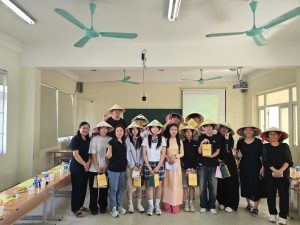 Sau buổi làm việc, các đại biểu và sinh viên tham gia hoạt động trải nghiệm văn hóa Việt Nam, tìm hiểu về ý nghĩa của chiếc nón lá – biểu tượng của vẻ đẹp truyền thống dân tộc.