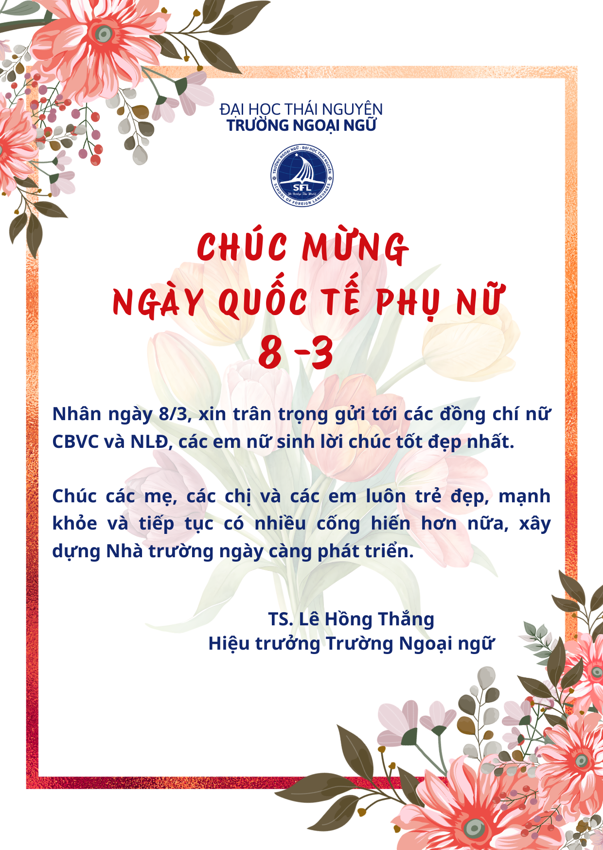06/03/2026 Hiệu trưởng Trường Ngoại ngữ “Chúc mừng ngày Quốc tế Phụ nữ 8-3” Hiệu trưởng Trường Ngoại ngữ “Chúc mừng ngày Quốc tế Phụ nữ 8-3” Chia sẻ: